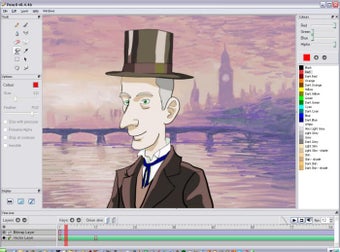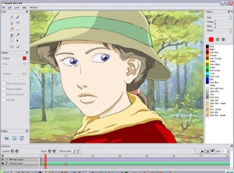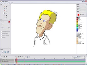Como herramientas incluye un lápiz, un pincel, herramientas para crear poli líneas, colorear por trazos o por zonas y una línea de tiempo para marcar los fotogramas de la animación.